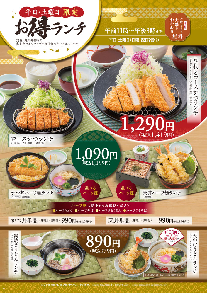 どんじゃか長門店ランチメニュー