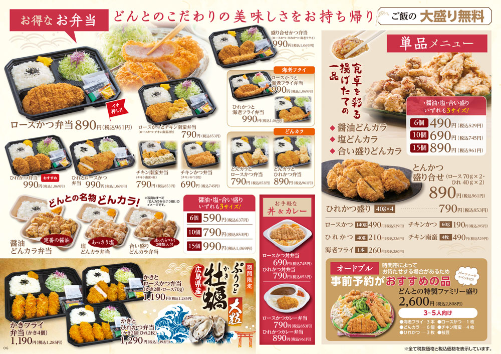 「どんとのお持ち帰りメニュー」は下記店舗でご購入いただけます。