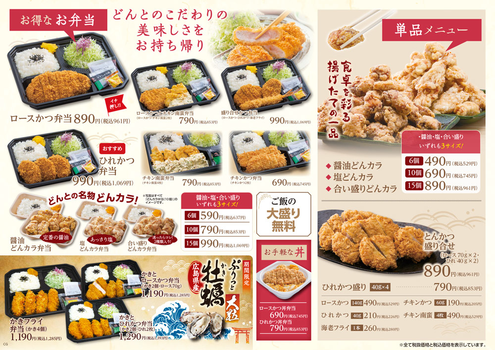 「どんとのお持ち帰りメニュー」は下記店舗でご購入いただけます。
