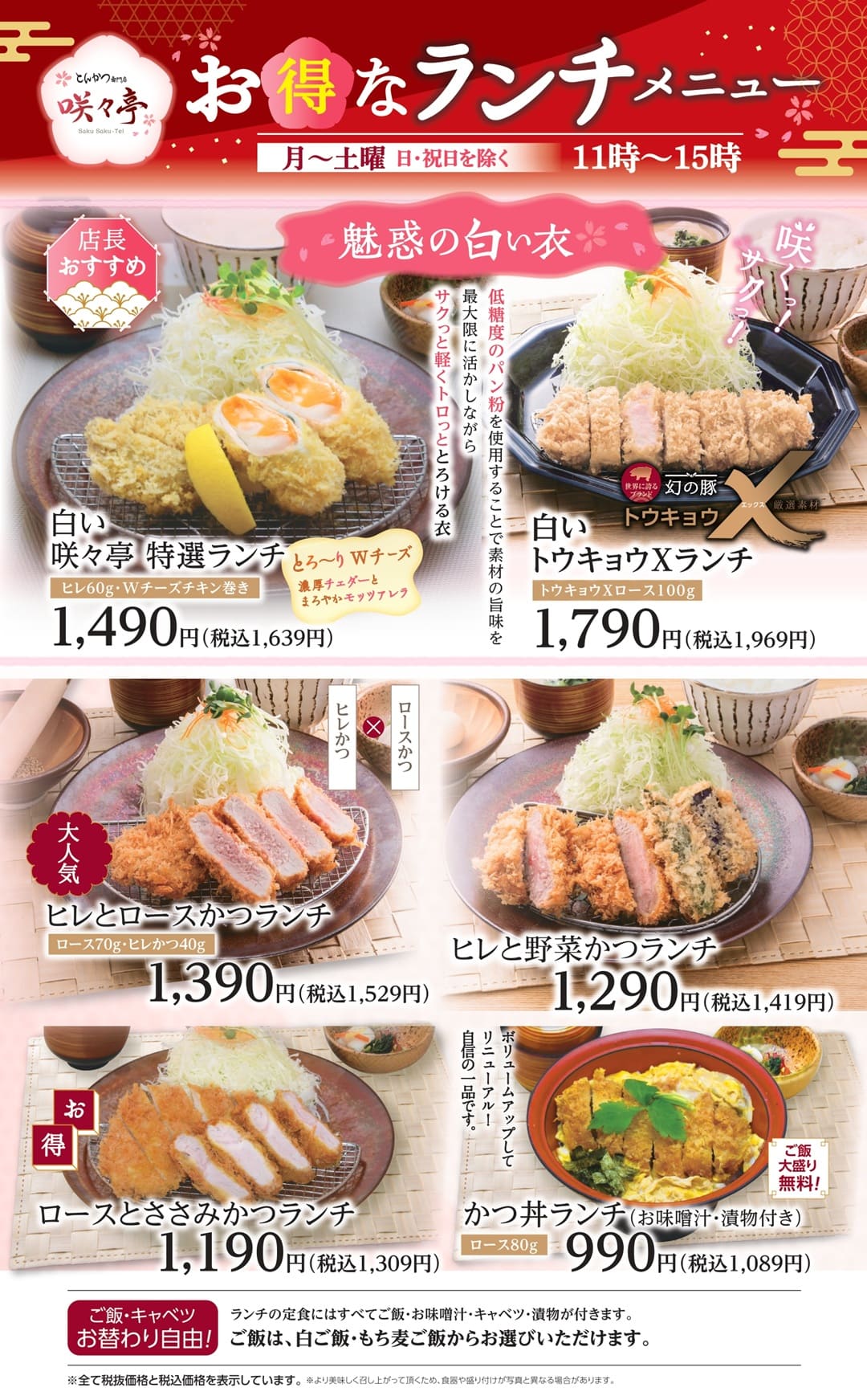 咲々亭ランチ新登場🍴 贅沢ヒレかつ×チーズ巻きが100円OFF!
