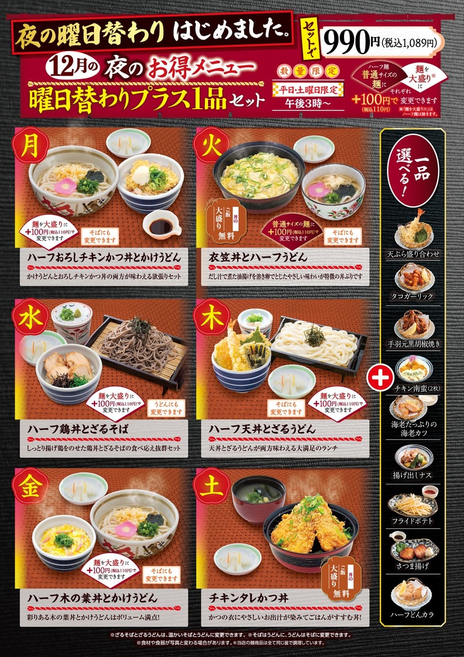 12月の曜日替わり「プラス1品セット」