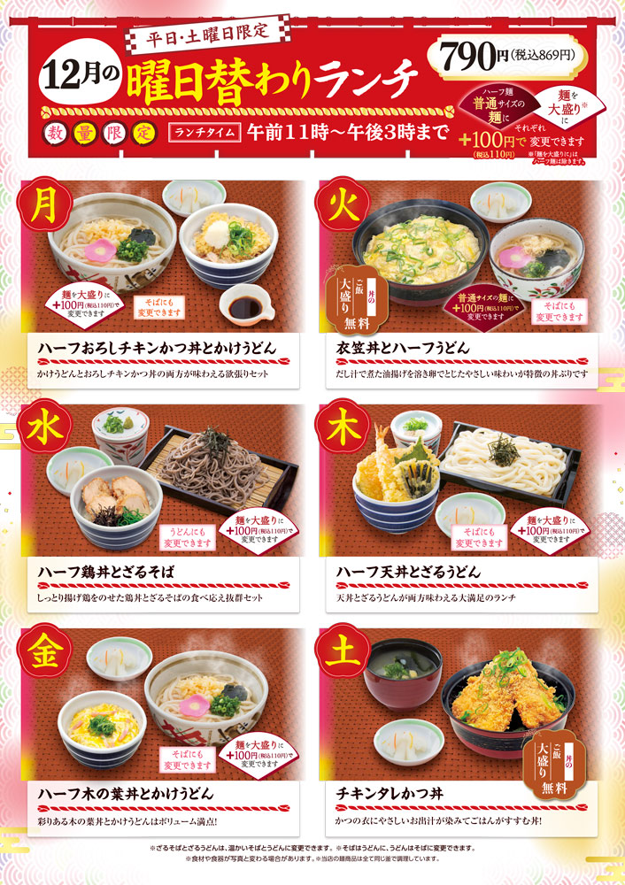 週のはじまりから週末まで、おいしく・お得に。お仕事で忙しい方、一人でのランチにもぴったり。