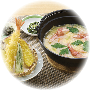 🦀 蟹(かに)雑炊天ぷらセット … 1,590円(税込1,749円)