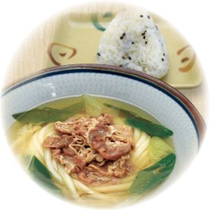 【牛肉あんかけうどんセット + ごま塩むすび】